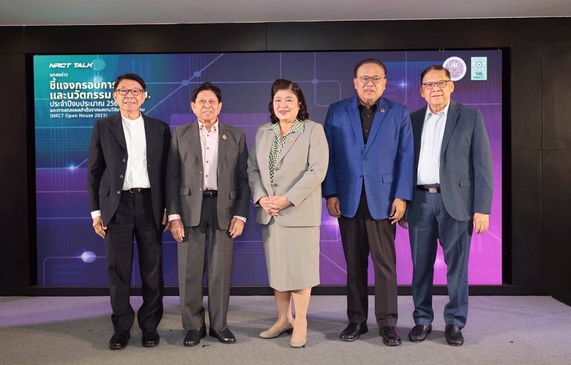 วันที่ 15 มิถุนายน 2568 สำนักงานการวิจัยแห่งชาติ(วช.) กระทรวงการอุดมศึกษา วิทยาศาสตร์ วิจัยและนวัตกรรม จัดงานแถลงข่าว NRCT Talk เรื่อง “ชี้แจงกรอบการวิจัยและนวัตกรรม ของ วช. ประจำปีงบประมาณ 2569 และการแถลงผลสำเร็จจากผลงานวิจัยและนวัตกรรม (NRCT Open House 2025)” โดย ดร.วิภารัตน์ ดีอ่อง ผู้อำนวยการสำนักงานการวิจัยแห่งชาติ เป็นประธานในพิธี พร้อมด้วย ดร.วิจารย์ สิมาฉายา กรรมการดำเนินงานสนับสนุนการวิจัยและนวัตกรรมประเด็นเป้าหมายด้านการพัฒนาสุขภาพสังคมและสิ่งแวดล้อม, ศาสตราจารย์ ดร.สนิท อักษรแก้ว ประธานคณะกรรมการดำเนินงานสนับสนุนการวิจัยและนวัตกรรมประเด็นเป้าหมายด้านการพัฒนาสุขภาพสังคมและสิ่งแวดล้อม, ศาสตราจารย์ ดร.วันชัย ดีเอกนามกูล กรรมการด้านการพัฒนาเส้นทางอาชีพนักวิจัย และรองศาสตราจารย์ ดร.กล้าณรงค์ ศรีรอต ประธานคณะกรรมการดำเนินงานสนับสนุนการวิจัยและนวัตกรรมประเด็นเป้าหมายด้านการพัฒนาเศรษฐกิจและการเกษตร ร่วมเสวนาวิชาการ ณ ศูนย์สารสนเทศกลางด้านวิทยาศาสตร์ วิจัยและนวัตกรรม วช.
