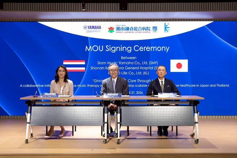 กรุงเทพมหานคร, 27 เมษายน 2569 — บริษัท สยามดนตรียามาฮ่า จำกัด ร่วมเฉลิมฉลองวาระครบรอบ 60 ปีอย่างยิ่งใหญ่ ประกาศความร่วมมือระดับนานาชาติ และจัดพิธีลงนามบันทึกข้อตกลงความเข้าใจ โครงการดนตรีบำบัด ไทย-ญี่ปุ่น ร่วมกับ Shonan Kamakura General Hospital ผู้เชี่ยวชาญด้านการแพทย์และงานวิจัยจากประเทศญี่ปุ่น และ บริษัท ไคโก ไลฟ์ จำกัด ผู้ประสานงานและขับเคลื่อนโครงการ เพื่อพัฒนาโมเดลดนตรีบำบัดเพื่อการดูแลสุขภาพเชิงป้องกัน โดยงานจัดขึ้น ณ ชั้น 5 Yamaha Music Hall อาคารสยามปทุมวัน เฮ้าส์
