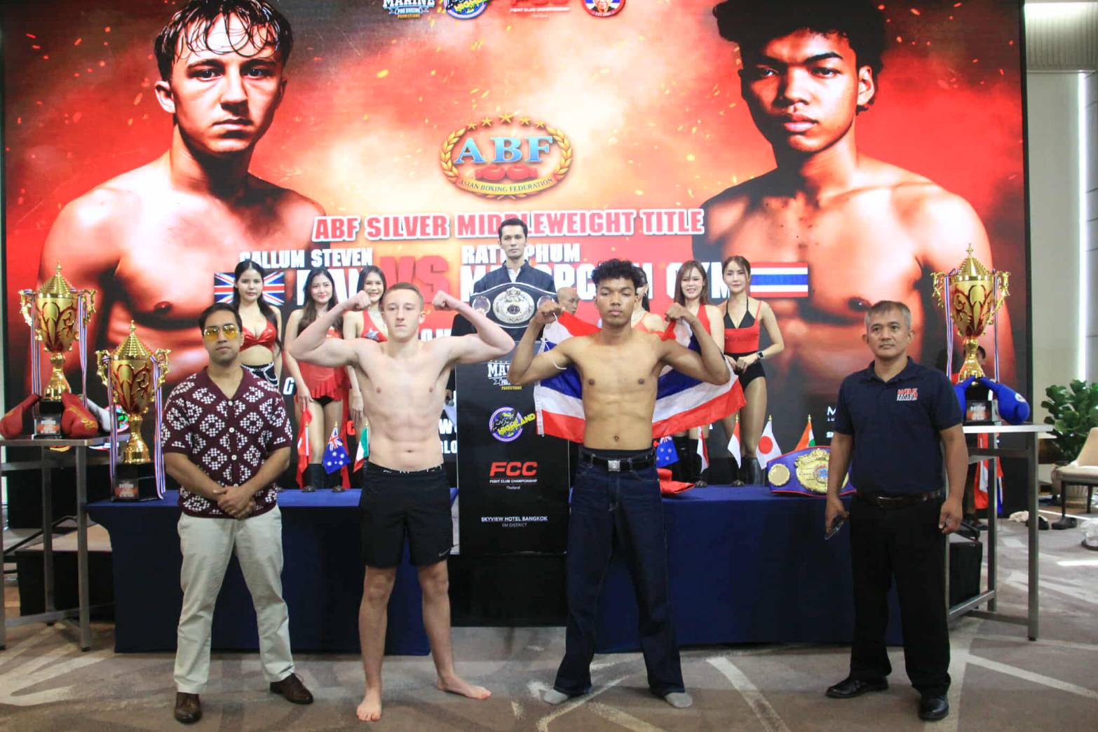 คู่ที่ 18. ศึกชิงเข็มขัดแชมป์ ABF SILVER รุ่นมิดเดิลเวท พิกัด 160 ปอนด์ (10 ยก) ระหว่าง คัลลัม สตีเวน แดน นักชกจากสหราชอาณาจักร พบกับ รัตภูมิ มโนปไชย ยิม นักชกไทย
