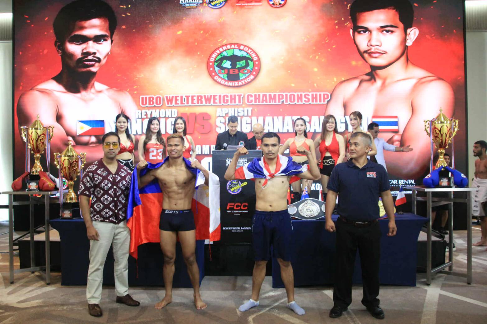 คู่ที่ 16. ศึกชิงเข็มขัดแชมป์ UBO รุ่นเวลเตอร์เวท พิกัด 147 ปอนด์ (10 ยก) ระหว่าง เรย์มอนด์ ยานอง นักชกจากฟิลิปปินส์ ปะทะ อภิสิทธิ์ สิงห์มนัสศักดิ์ ยิม นักชกไทย